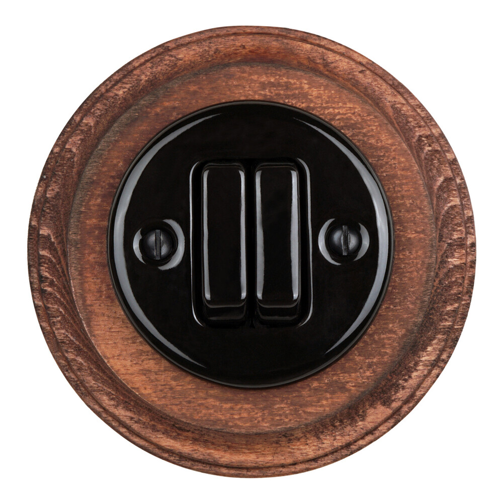 Fnd dvigubas mygtukas, juodas porcelianas, varžtiniai gnybtai, 10A, 250V, IP20.